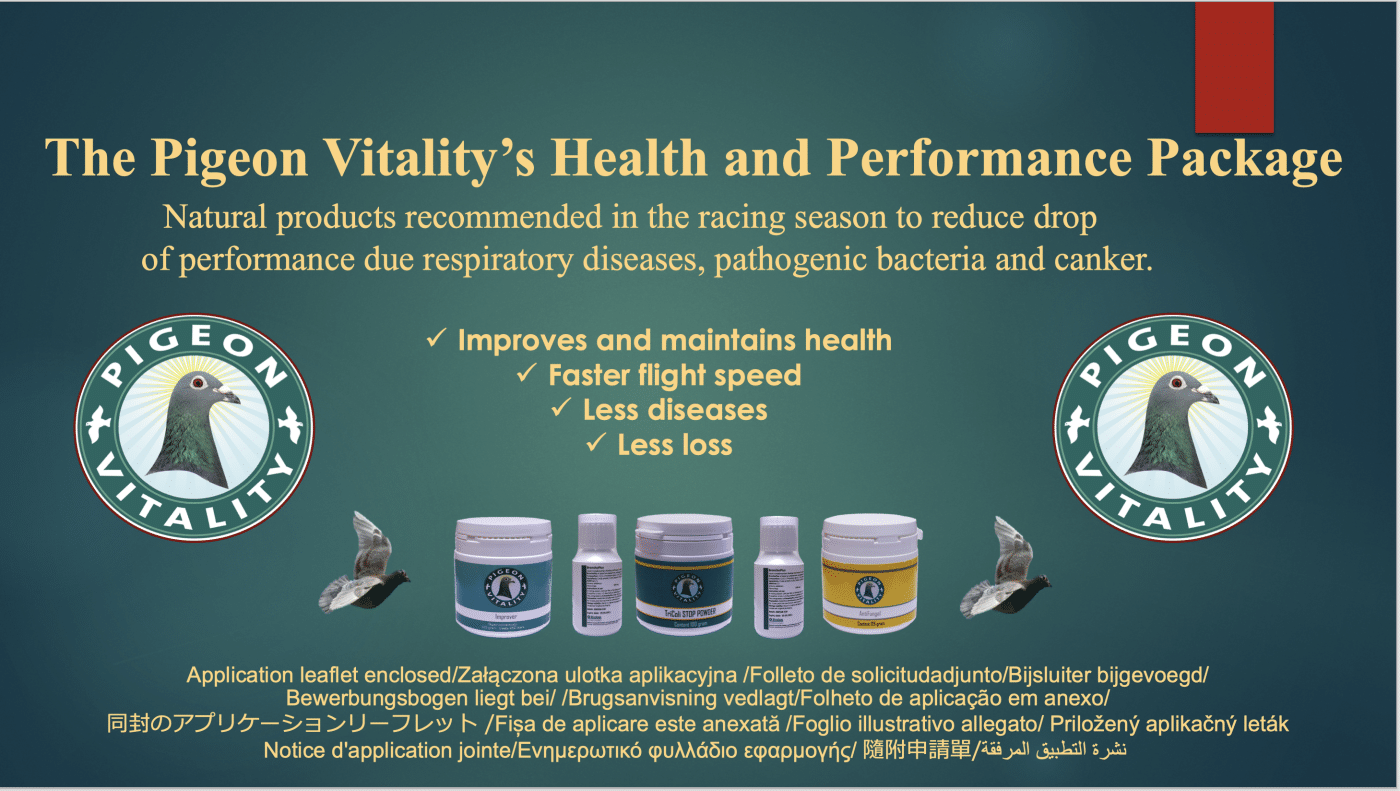 Pigeon Vitality has recognized this need and now offers a program to follow on a weekly basis, and because these are all NATURAL products, and repeated each week. Success is not accomplished in a week, but offered to your pigeons on a long term basis. Included in the package are the four very beneficial products your flying birds need the most.